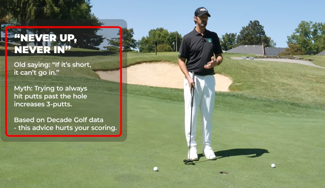 골프계에서 가장 오래된 격언 중 하나인 "지나가지 않으면 들어가지 않는다(Never up, never in)"는 많은 아마추어 골퍼들에게 공격적인 퍼팅을 강요해 왔습니다.