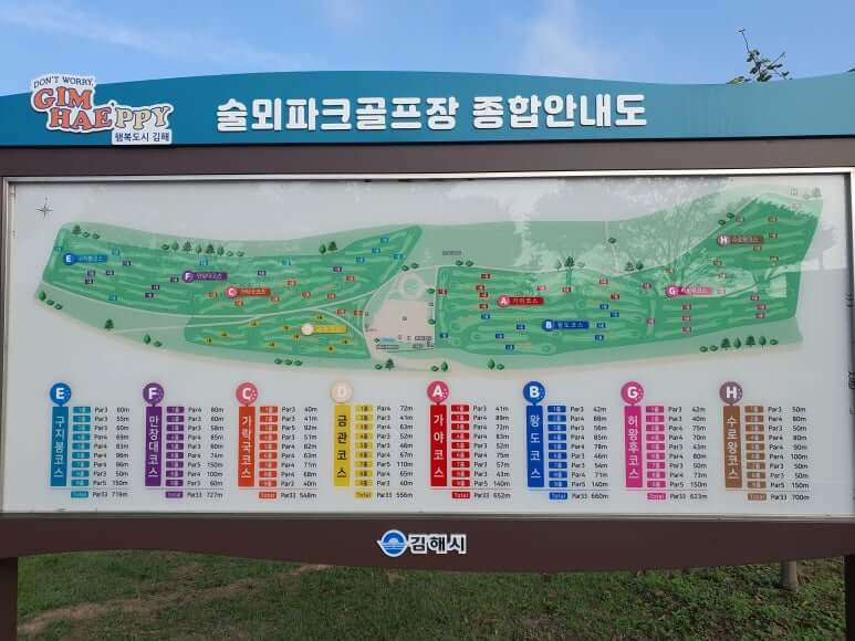 김해 해반천 파크골프장은 일반적인 파크골프장(9홀~18홀)보다 훨씬 큰 72홀 규모로 조성되어 있어, 다양한 코스를 경험할 수 있습니다. 이곳은 전국적인 규모의 대회가 열릴 정도로 체계적인 코스 운영이 이루어지고 있습니다.