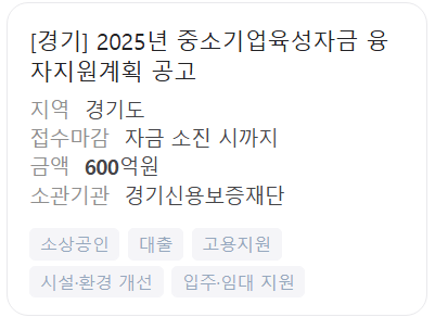 [경기] 2025년 중소기업육성자금 융자지원계획 공고 2025년 상반기 관광진흥개발기금 이차보전 지원 지침 공고
