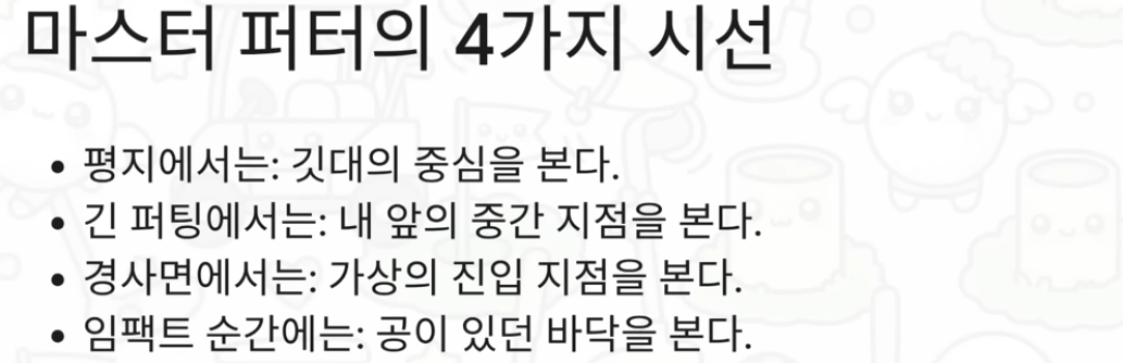 - 4. 짧은 거리 퍼팅 시 고개를 들지 말고 '소리를 들으라'고 하는 이유는 무엇인가요?