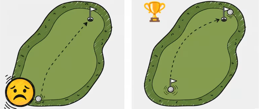 - 1. 머릿속으로 완벽한 성공 라인 그리기 2. 연습 스윙으로 거리 몸에 입력 3. 클럽부터 몸까지 완벽하게 정렬 4. 모든 의심 버리고 오직 실행에 집중