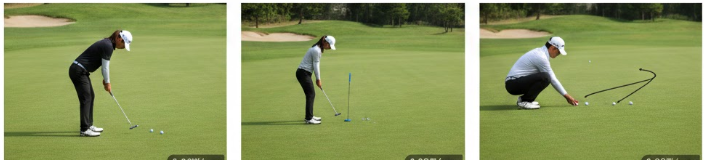 - 연습 그린에서 3m, 5m, 10m 등 다양한 거리에서 반복적으로 퍼팅을 해보세요. 공이 굴러가는 소리와 느낌에 집중하며, 백스트로크 크기와 팔로우스루 길이를 조절하는 연습을 합니다. 특히 눈을 감고 공이 굴러가는 거리를 상상해보는 훈련도 효과적입니다.