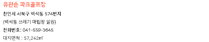 - **단체 패키지:** 대규모 단체(예: 지역 동호회, 회사 워크숍 등)의 경우, 천안시 체육시설 관리팀에 사전 문의하면 **단체 이용 시간 조정 및 코스 배정** 등에 대한 협의가 가능합니다. 단체 이용 시에는 반드시 사전에 연락하여 이용 규정을 확인하는 것이 좋습니다.