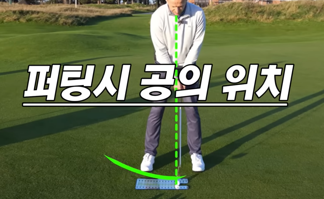 A. 퍼터 헤드가 최저점을 지나 상승 궤도에 진입하는 시점이 바로 그곳이기 때문입니다. 상향 타격을 위한 가장 쉬운 세팅입니다.