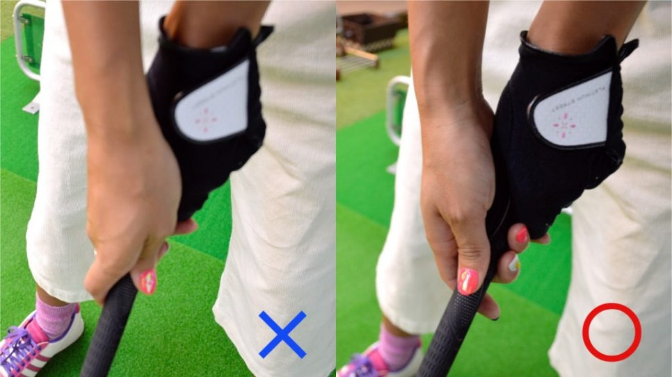 그립을 잡을 때는 왼쪽 새끼손가락이 중요하며, 그립 끝에서 1~2cm 정도 떨어뜨려 잡아야 한다.