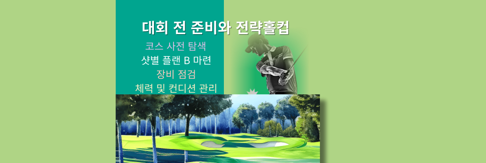 대회 당일 문제가 발생하지 않도록 클럽, 공, 티 등의 상태를 미리 점검하고, 대회 규정에 맞는 장비를 준비해야 합니다.