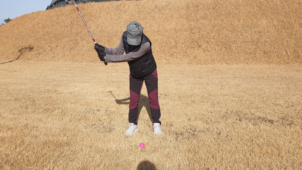 뒤 에서 본 백스윙 자세