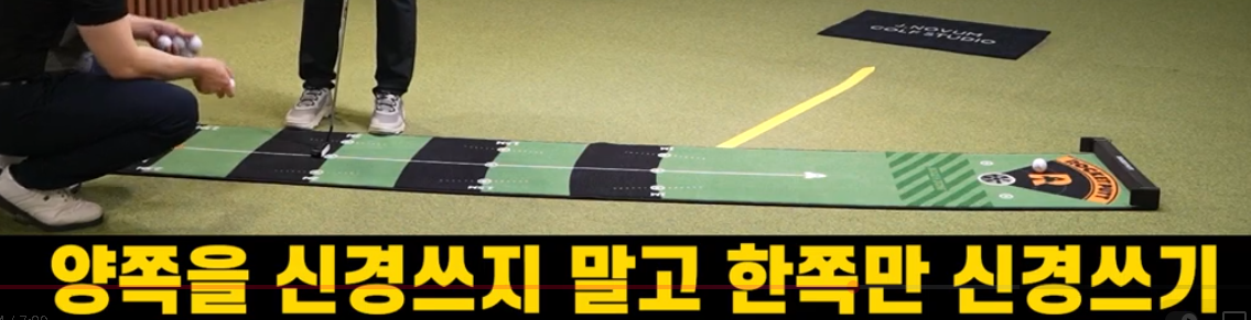 - 내리막일수록 백스윙을 아주 작게 가져가되, 임팩트 순간의 가속은 미세하게라도 유지되어야 합니다. 감속하며 공을 건드리면 라인을 타지 못하고 빗나갈 확률이 매우 높습니다. 백스윙 크기로 세기를 조절하세요.
