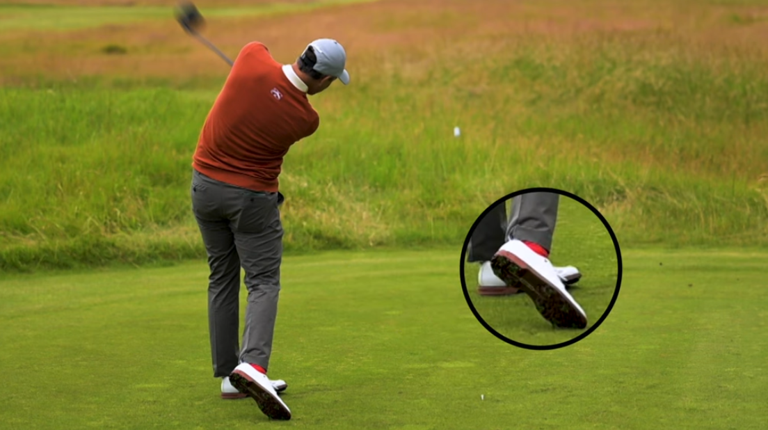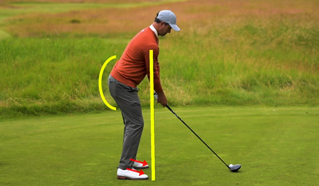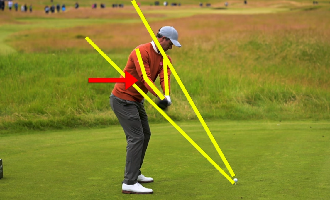 테이크어웨이 시 왼팔이 몸과 떨어지지 않고 하나로 움직여야 균형 잡힌 회전이 가능해집니다. 또한, 셋업 단계에서 힙에서부터 몸을 굽히고 발 앞쪽에 적절한 압력을 주는 것이 중요합니다. 이렇게 하면 척추 각도를 유지하면서 중심축을 기준으로 안정적으로 회전할 수 있는 토대가 마련됩니다.
